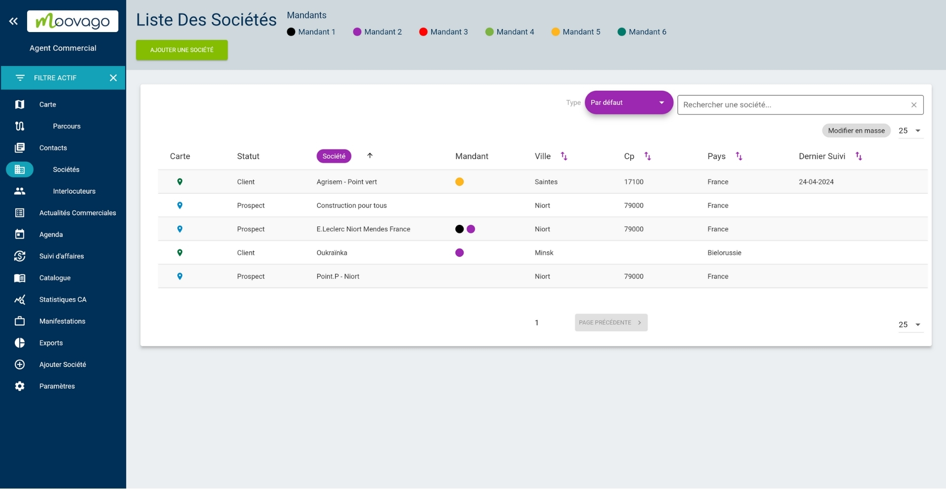 Les sociétés qui apparaissent dans la liste des sociétés sont celles qui correspondent au filtre appliqué.